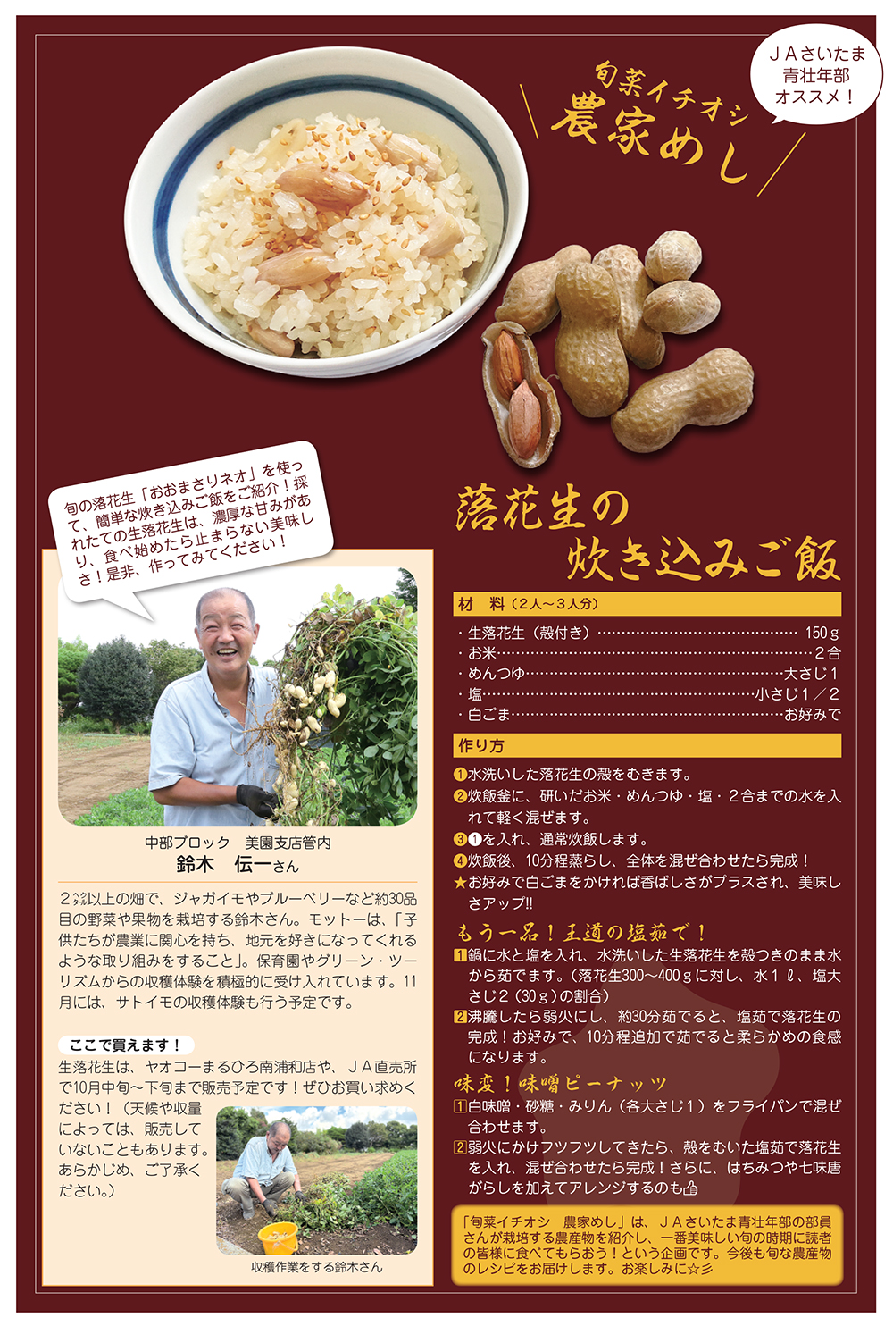 JAさいたま青壮年部オススメ!!~旬菜イチオシ農家めし~(落花生の炊き込みご飯)