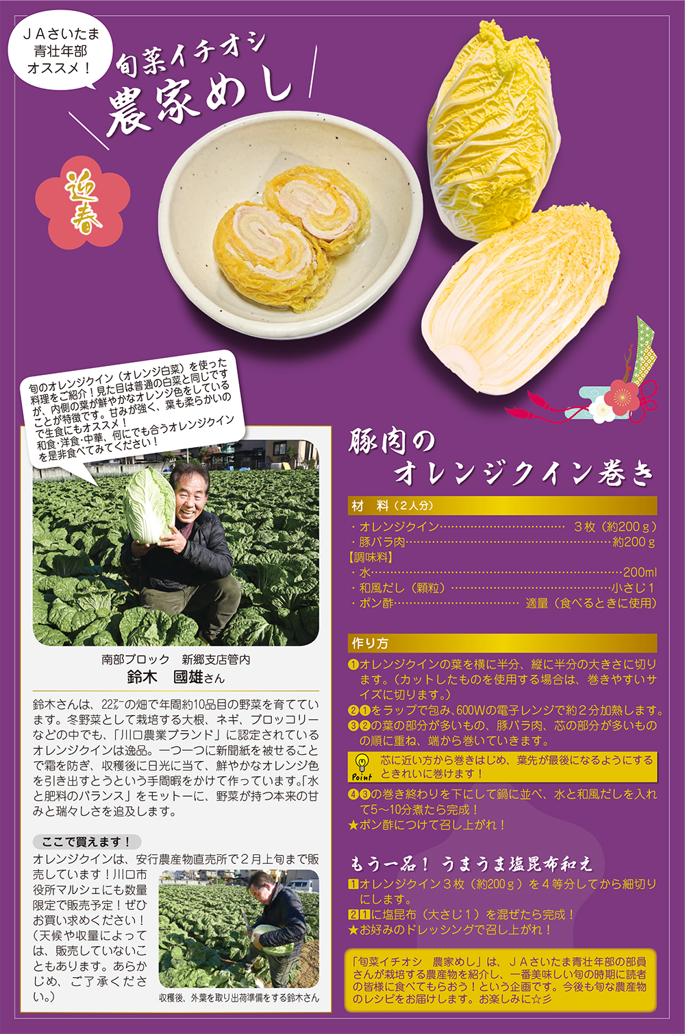 JAさいたま青壮年部オススメ!!~旬菜イチオシ農家めし~(豚肉のオレンジクイン巻き)