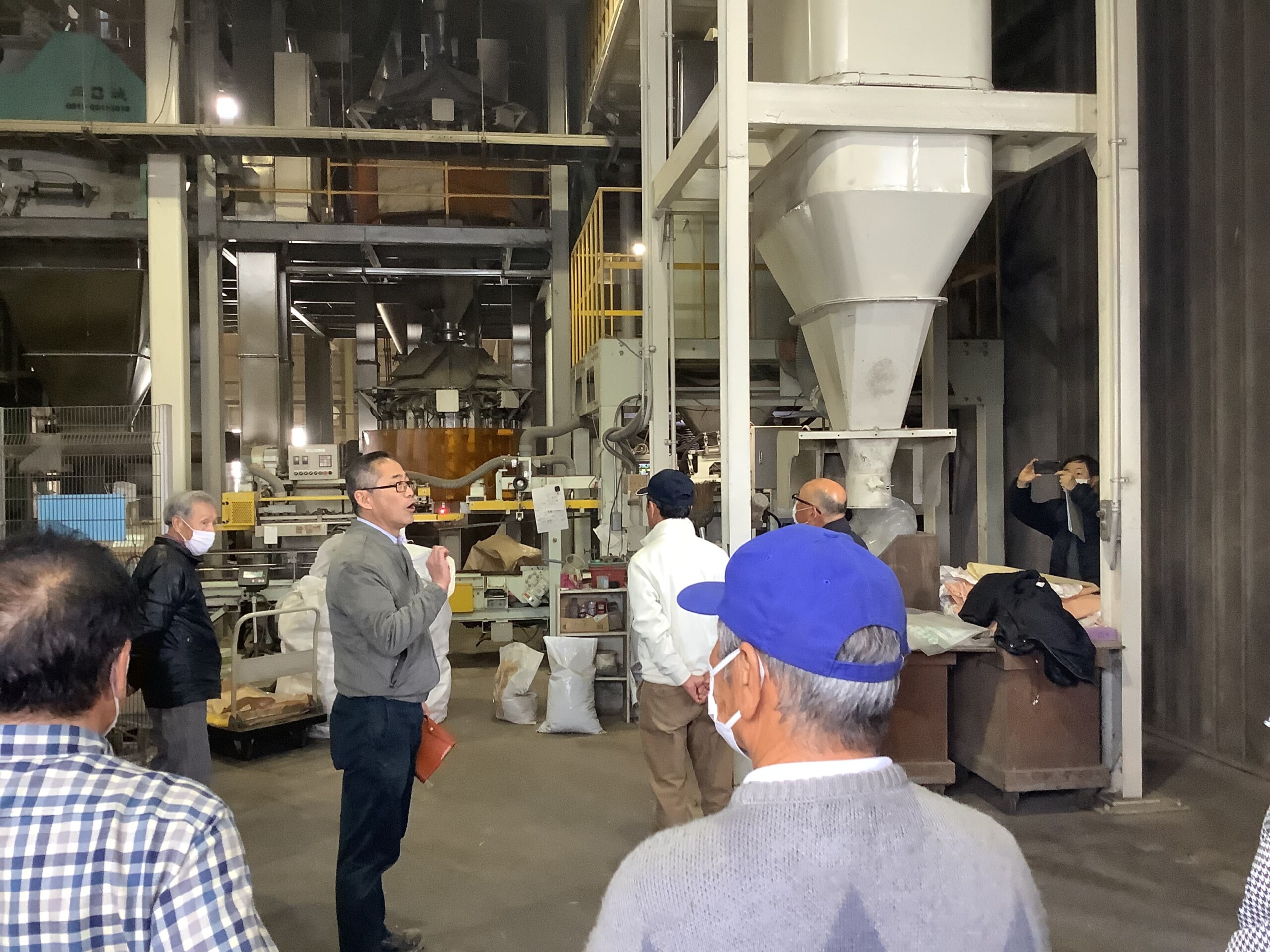 北本市の農政推進会議と認定農業者協議会は2月8日、静岡県焼津市にある丸石㈱の肥料工場で視察を実施。JAさいたまの組合員にも使用者が多く、魚粉などの原料を自社でブレンドして作られる肥料の製造工程などを見学しました。