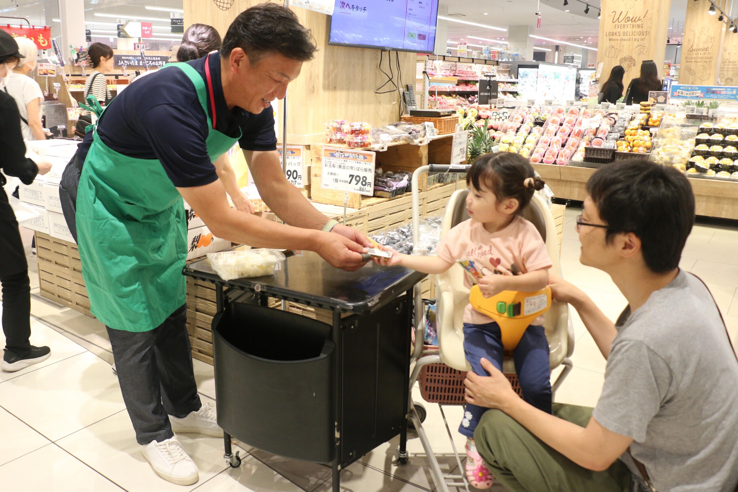 売り場の前では多くの来店客が足を止め、8月下旬から9月上旬の2週間ほどしか味わえない希少な梨の美味しさを堪能していました。
