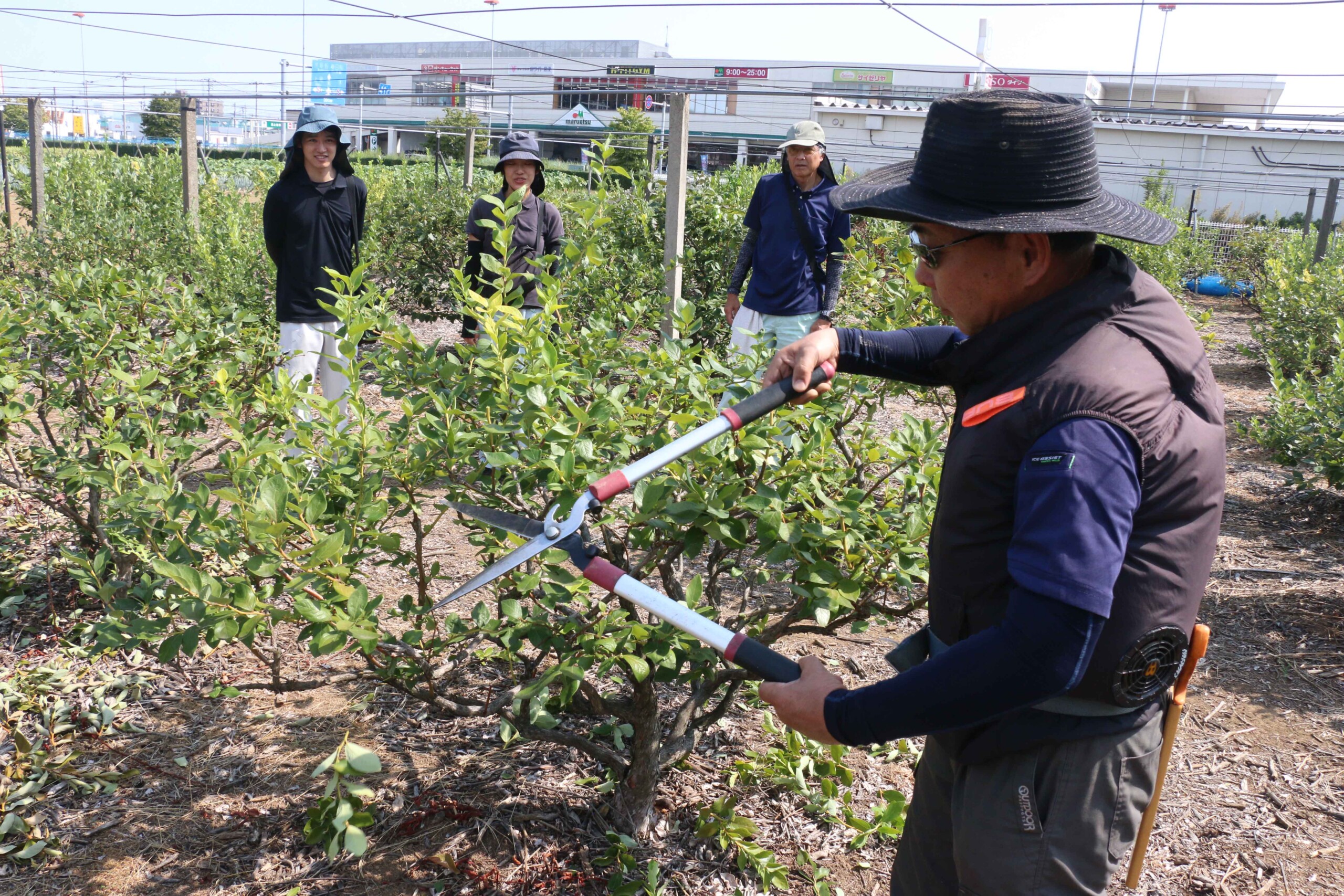 8月27日、さいたま市西区の野原観光農園を訪問し、ブルーベリーの夏季剪定を視察しました。