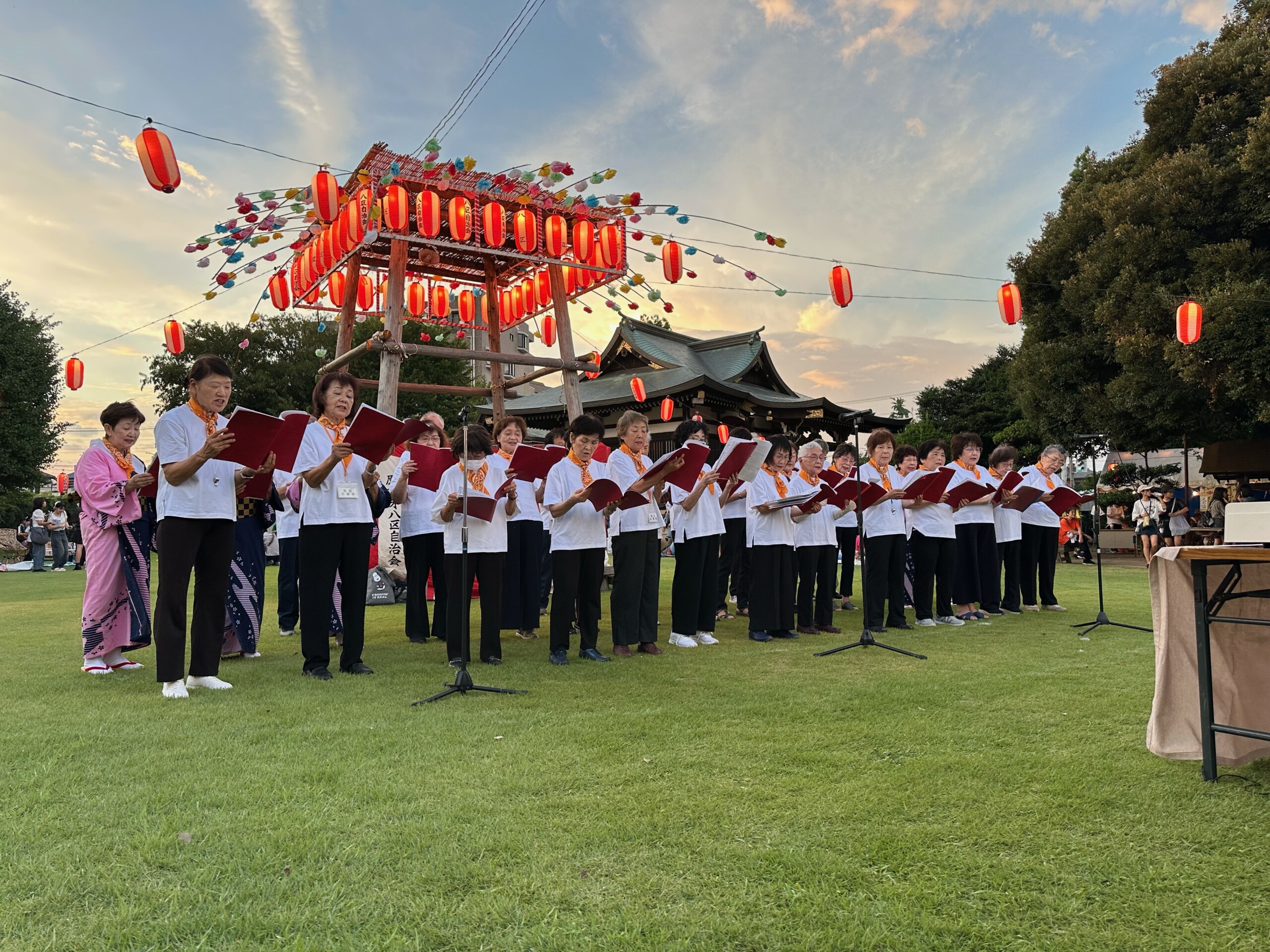 8月2、3日、当支店管内の瓦葺氷川神社の境内で原市第八区盆踊り大会が開催され、当支店の組合員や女性部原市支部の部員が多数所属している八区合唱団が美しいコーラスを披露しました。