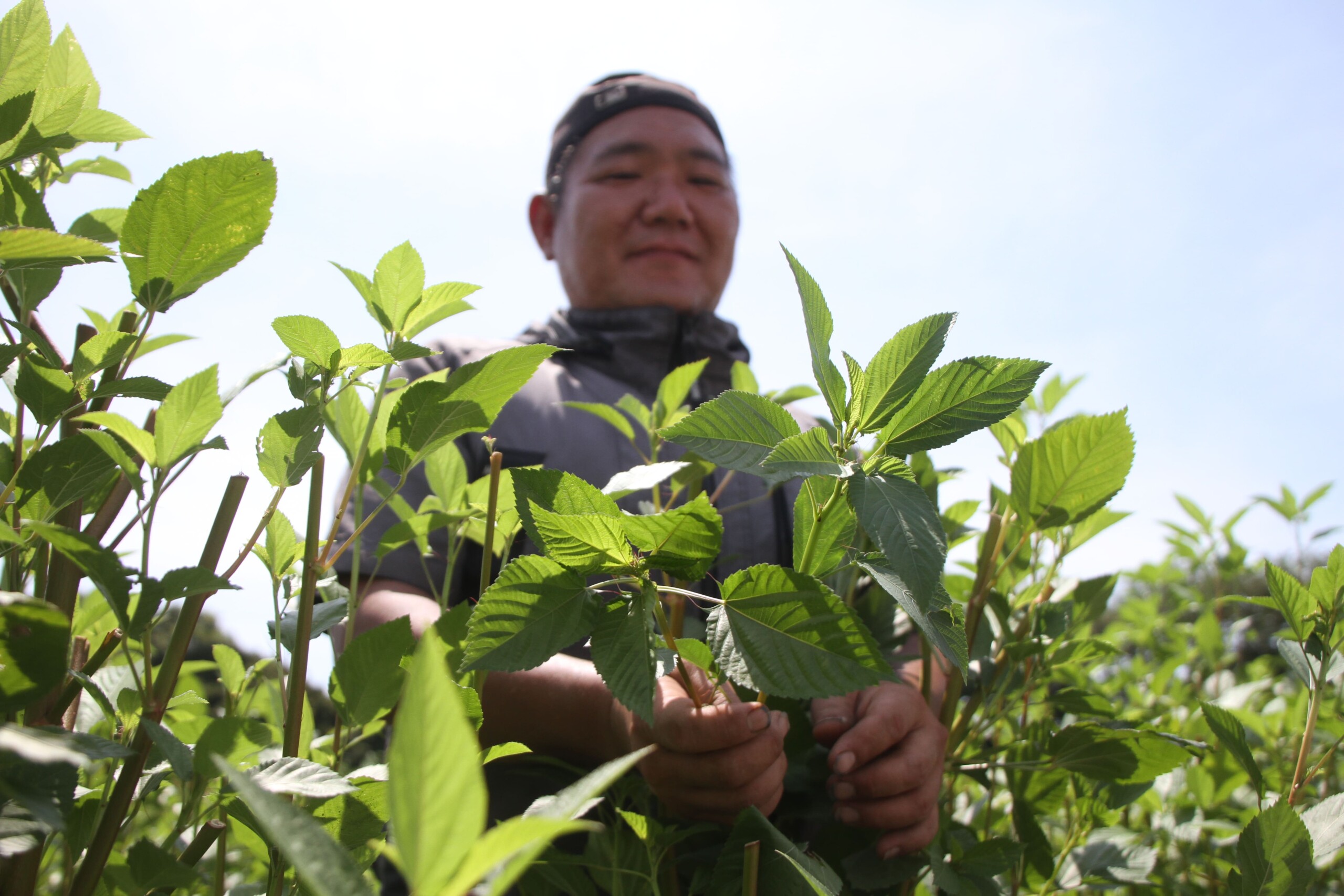 当支店管内で露地野菜を栽培する松澤政和さんは6年ほど前から、夏の暑い時期の青菜として重宝される「モロヘイヤ」を栽培しています。今年も10月いっぱいまで、JA直売所の木崎ぐるめ米ランドやJA管内のインショップなどへ出荷します。