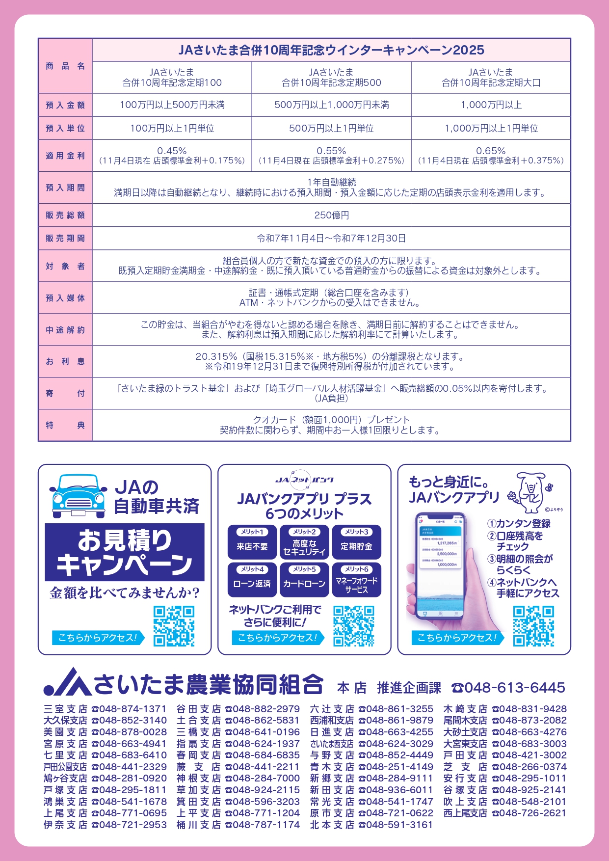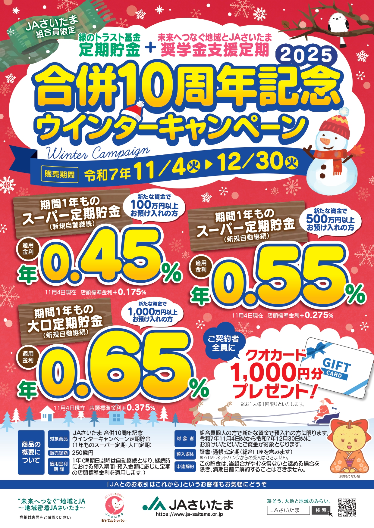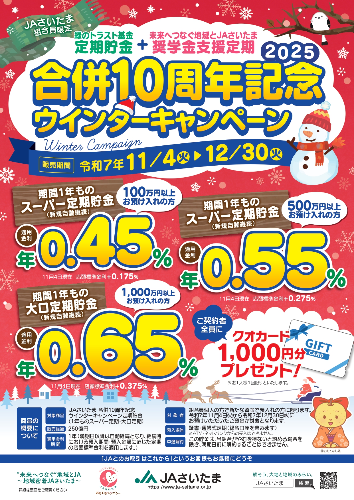 【JAさいたまウィンターキャンペーン】のご案内 2025年11月4日(火)~2025年12月30日(火)