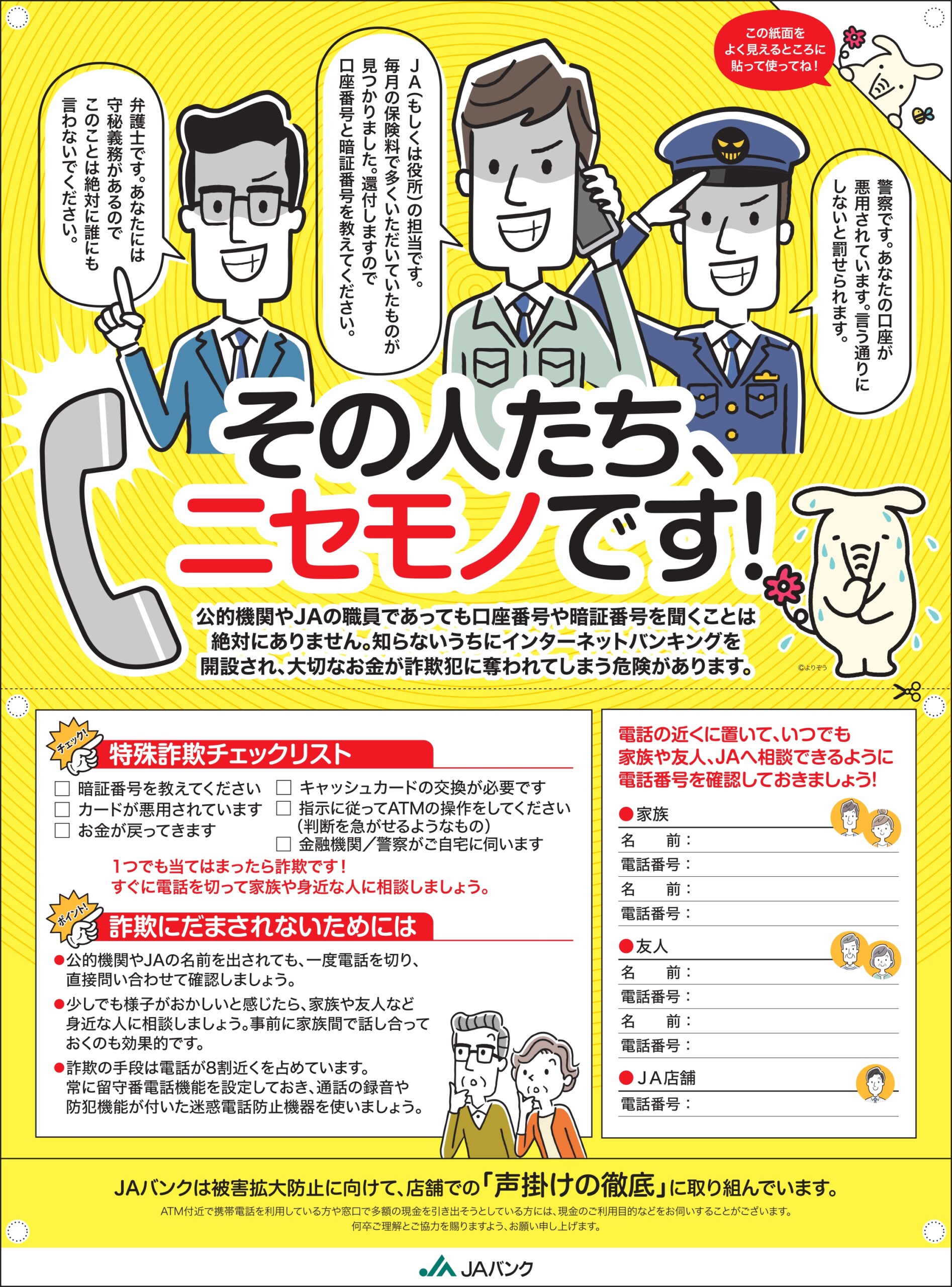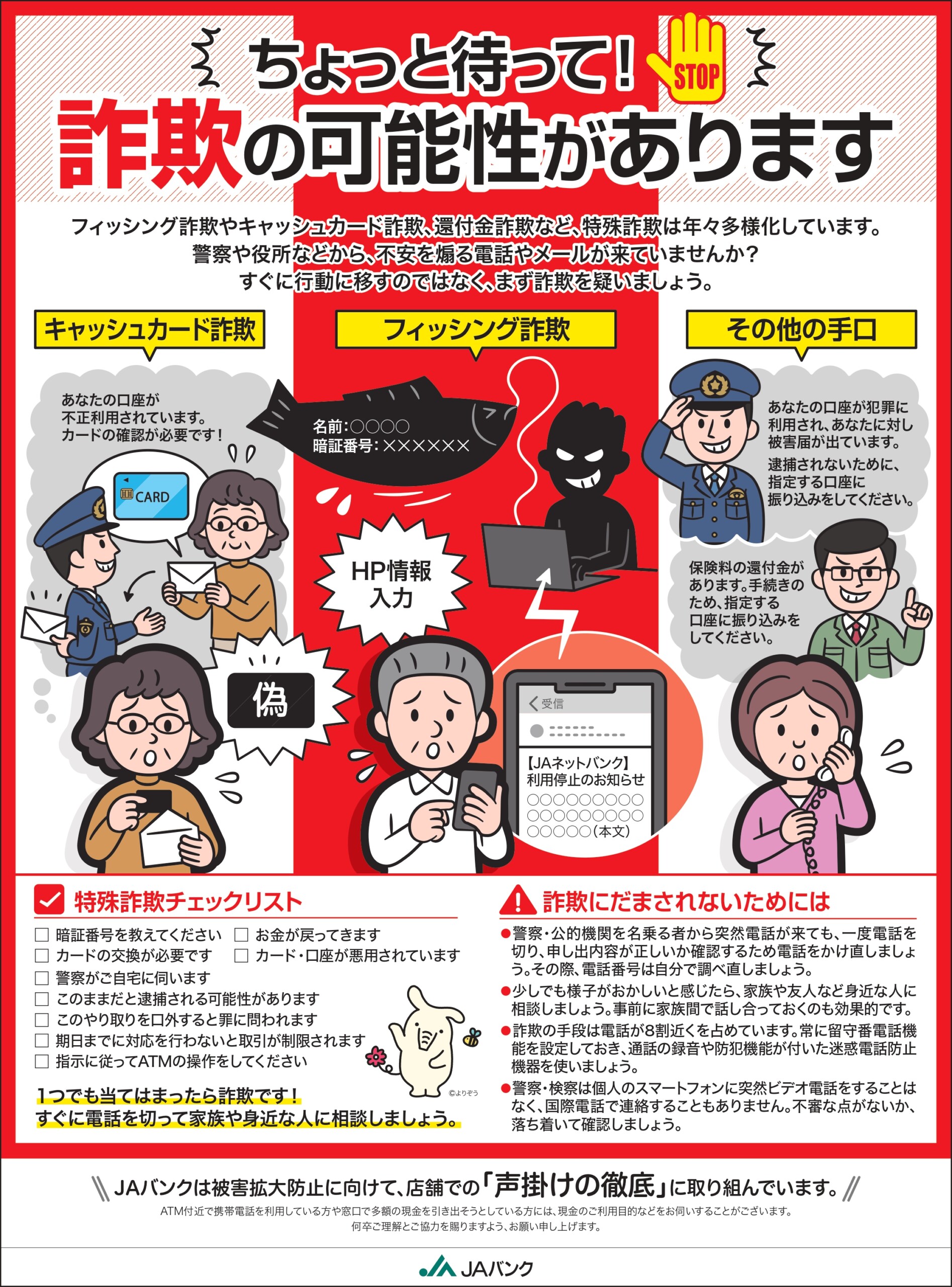 ちょっと待って!詐欺被害に注意⚠(キャッシュカード詐欺・フィッシング詐欺など)