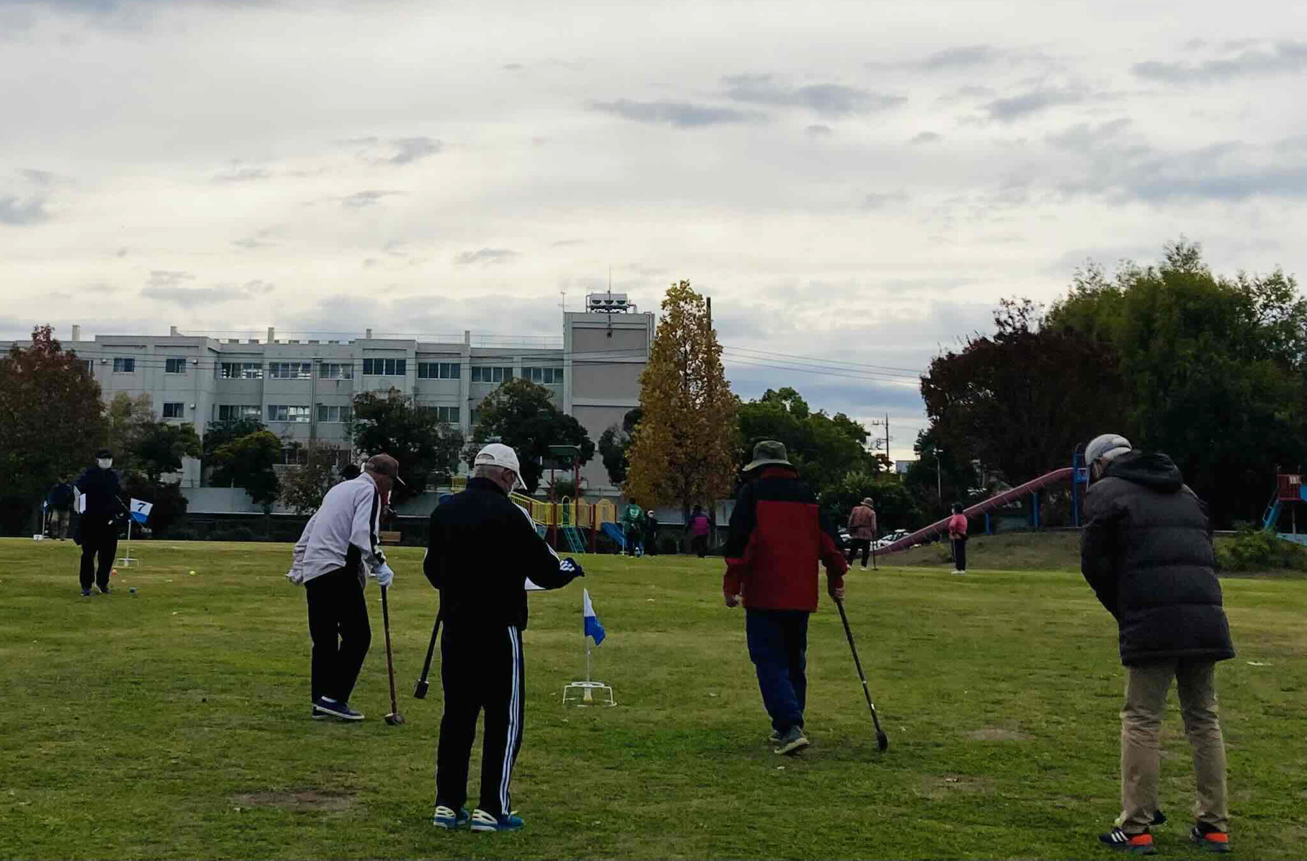 11月11日、瓦葺ふれあい広場にて、原市・伊奈支店合同のグラウンドゴルフ大会を開催しました。