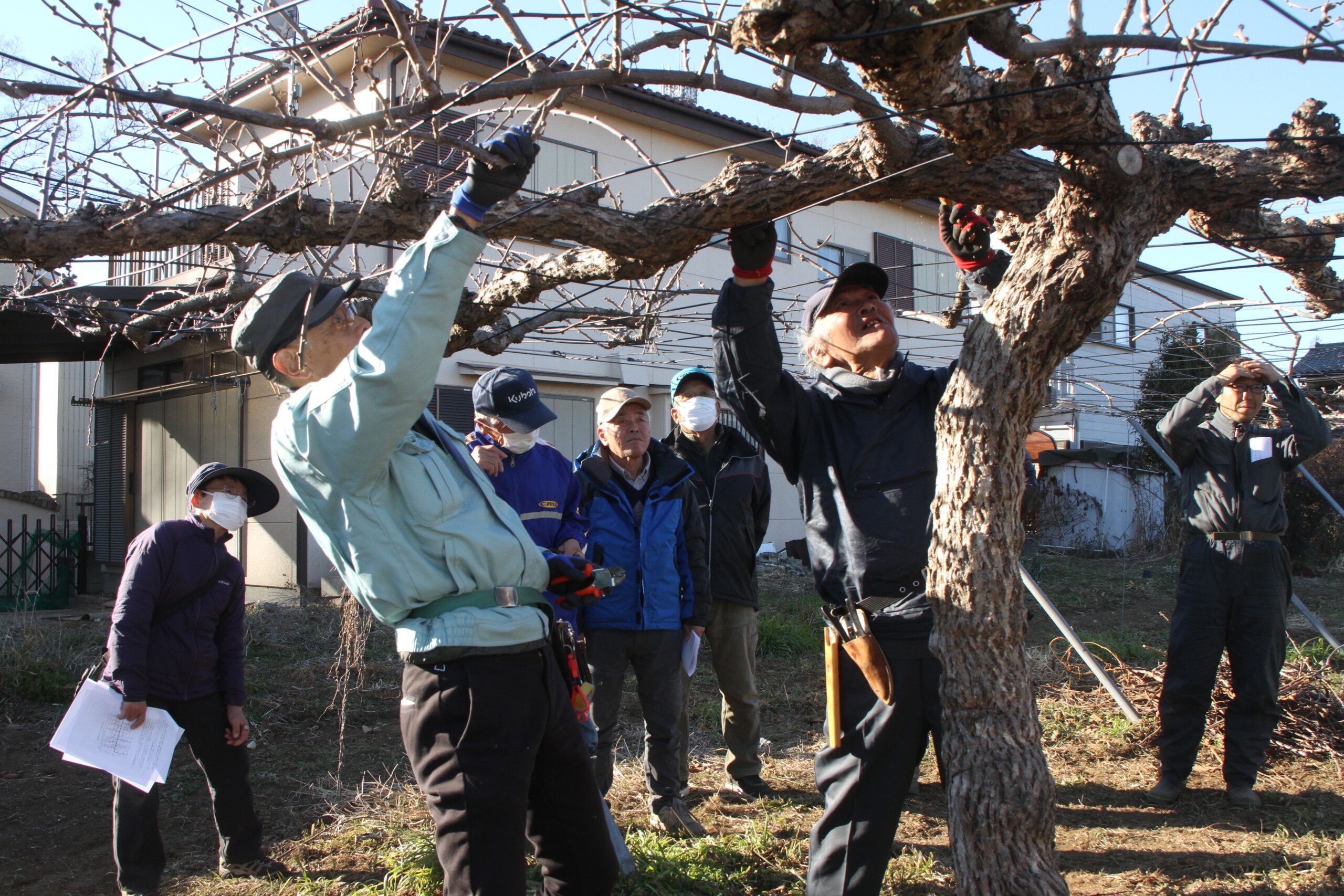 残す枝を見極め、配置を考えながら剪定を進め、近年の暑さによる日焼け防止に対応した枝葉の残し方など、剪定のコツを学びました。