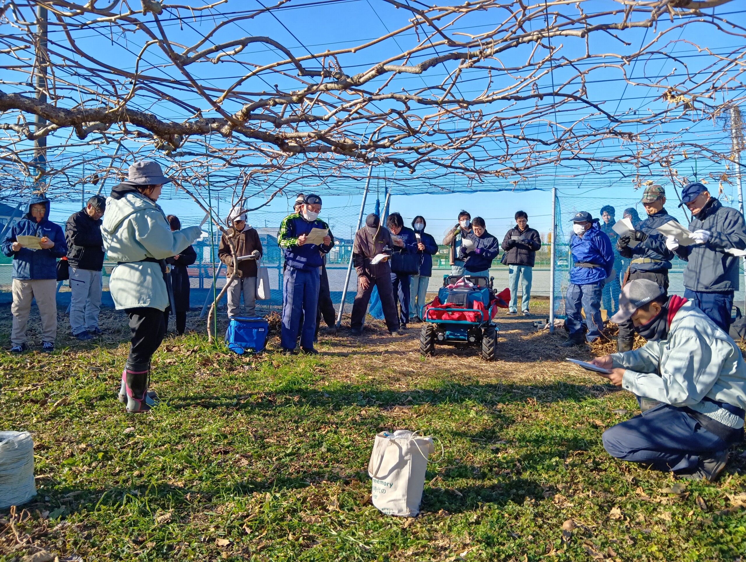 収穫を終え、冬の間の休眠期に行う果樹の剪定は、次期作の高品質な果実の生産に欠かせない大切な作業。JAさいたま管内各地で梨、ブドウ、キウイフルーツ、ブルーベリーの剪定講習会が開催され、生産者の他、さいたま農林振興センター、JA職員らが参加しました。